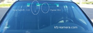 Da die Kamera relativ groß ist und eine lange Halterung besitzt, ragt sie auch ziemlich weit ins Sichtfeld des Fahrers. Hier ist Geschick gefragt, um die Kamera möglichst störungsfrei an der Windschutzscheibe anzubringen.